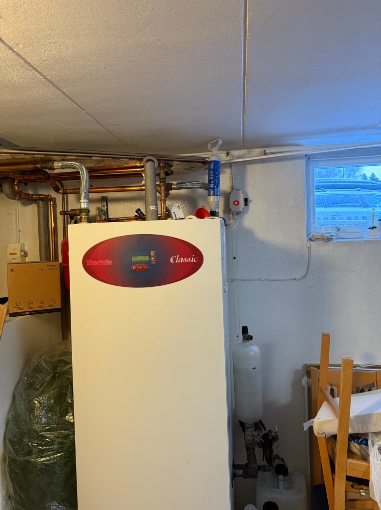 Värmepumpen är tung och det finns lite hjälp på plats.